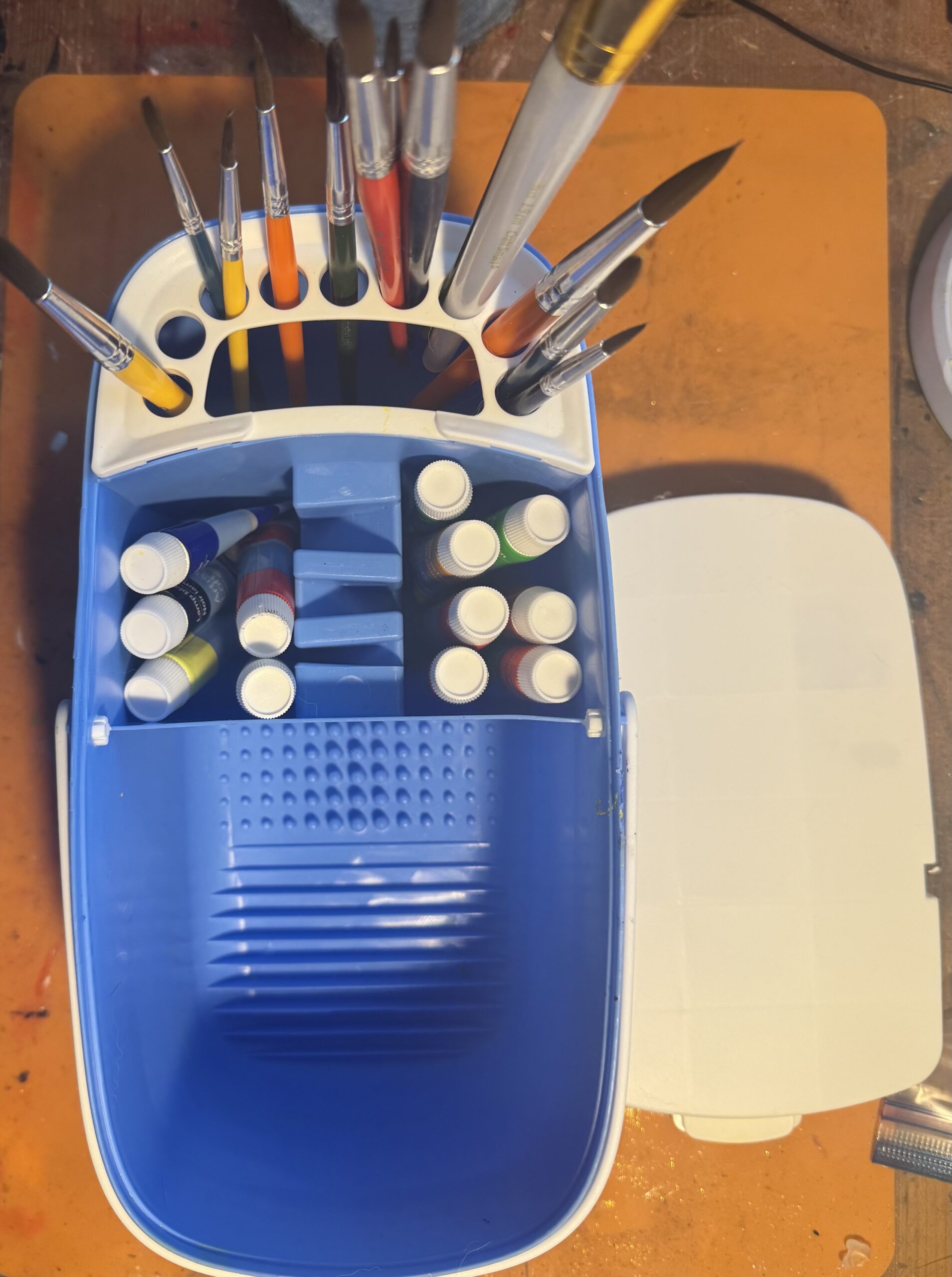 My main complaint is the brush holder setup. Once you have brushes sitting in the holders and the soaking compartment, changing the water becomes a bit of a hassle. You have to remove all the brushes first, which is mildly annoying when you’re in the middle of painting.